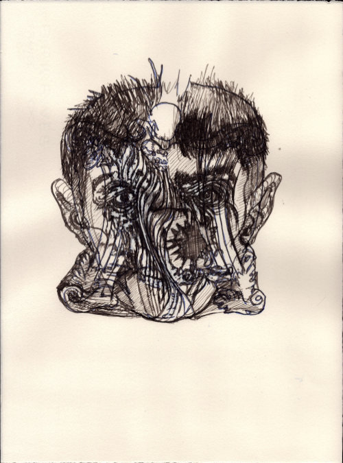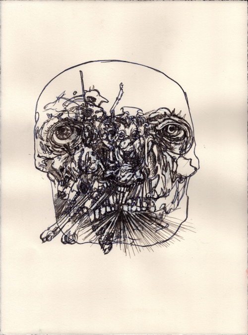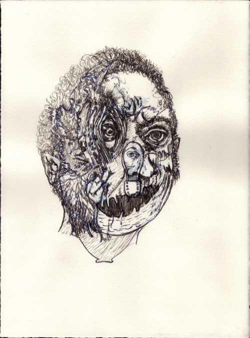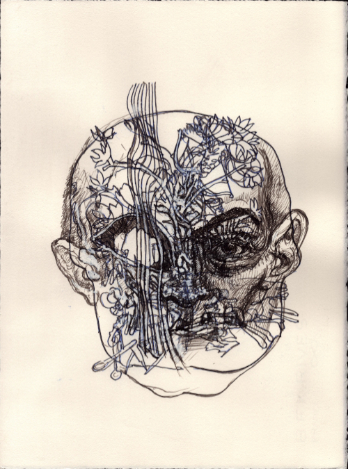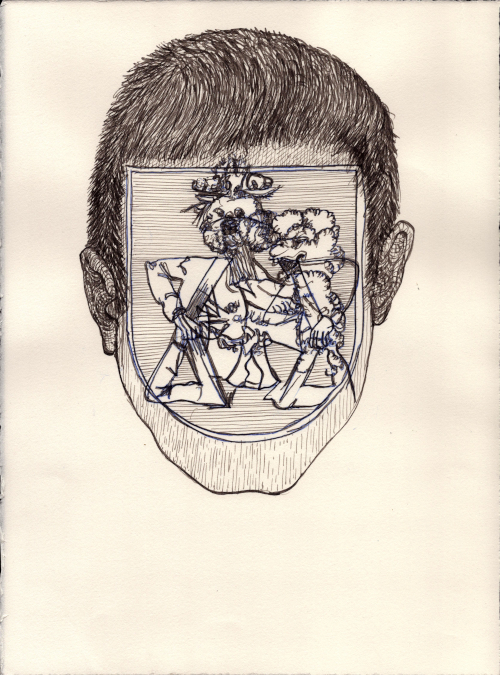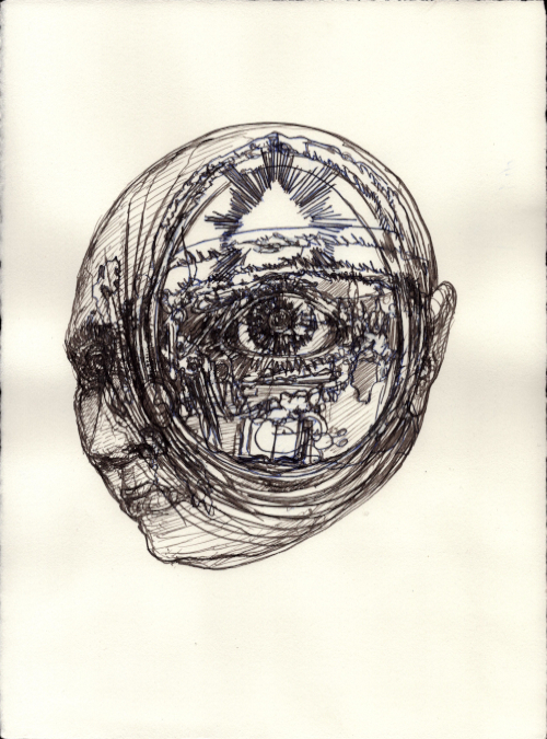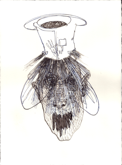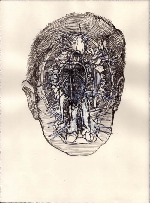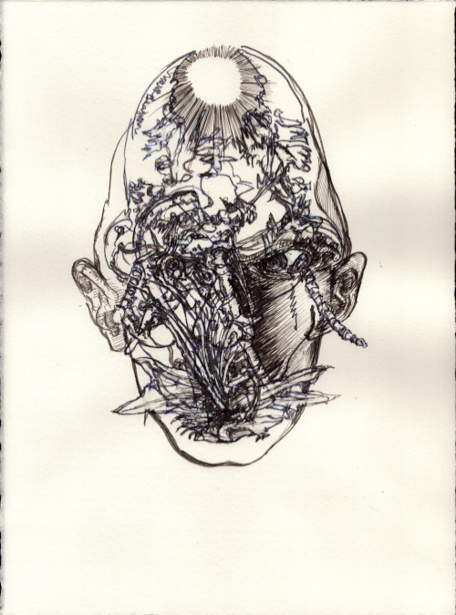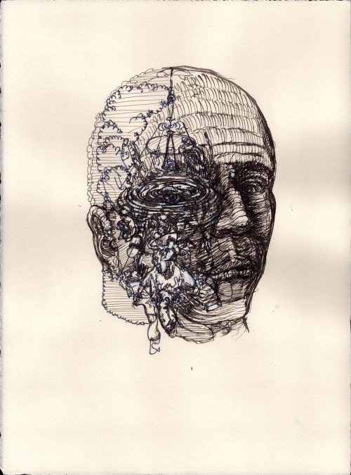 Août 2025, Plume et gouache blanche sur papier vélin, 38x28,5 cm