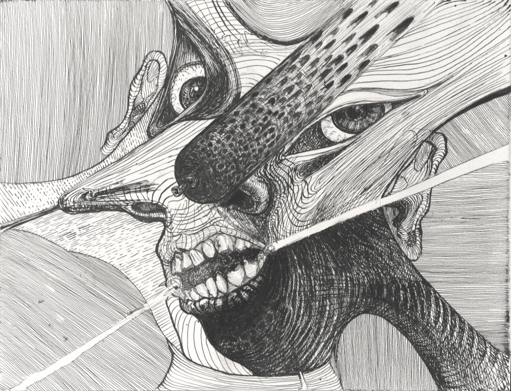 Mai-juillet 2025, plume et encre sur papier rives, 50x65cm