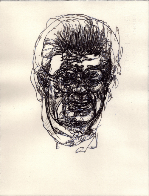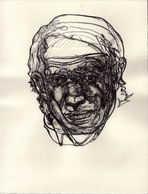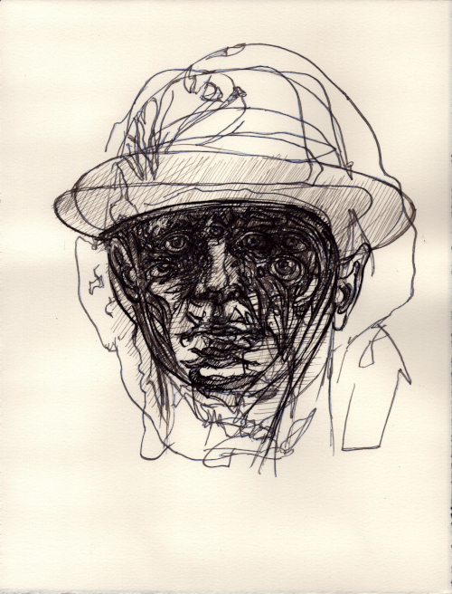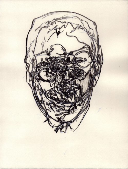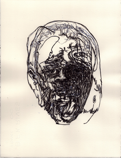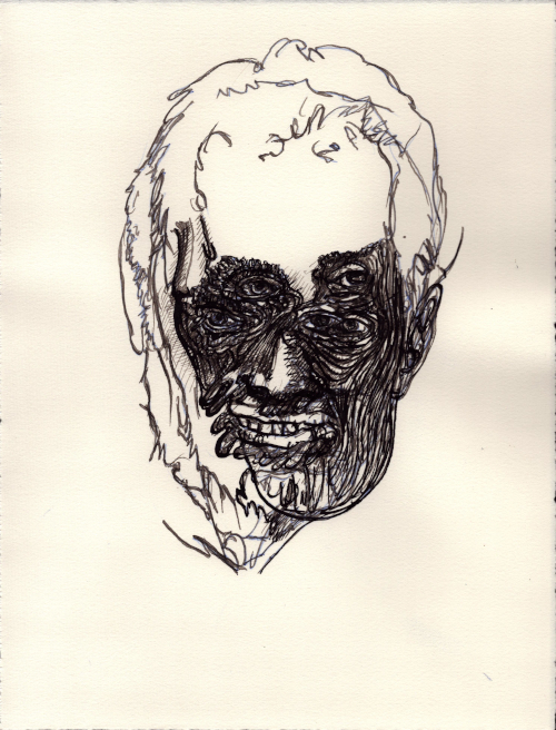 2025, Plume et gouache blanche sur papier vélin, 38x28,5 cm