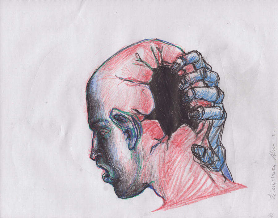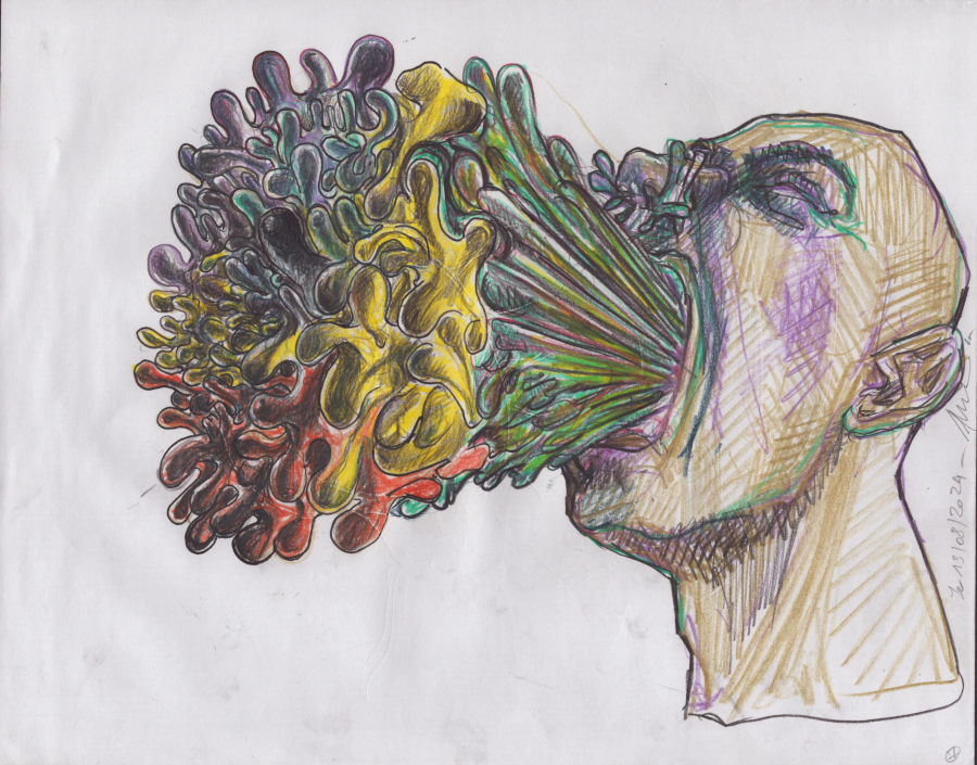 Dessins aux crayons de couleur, 2024, 25x32 cm